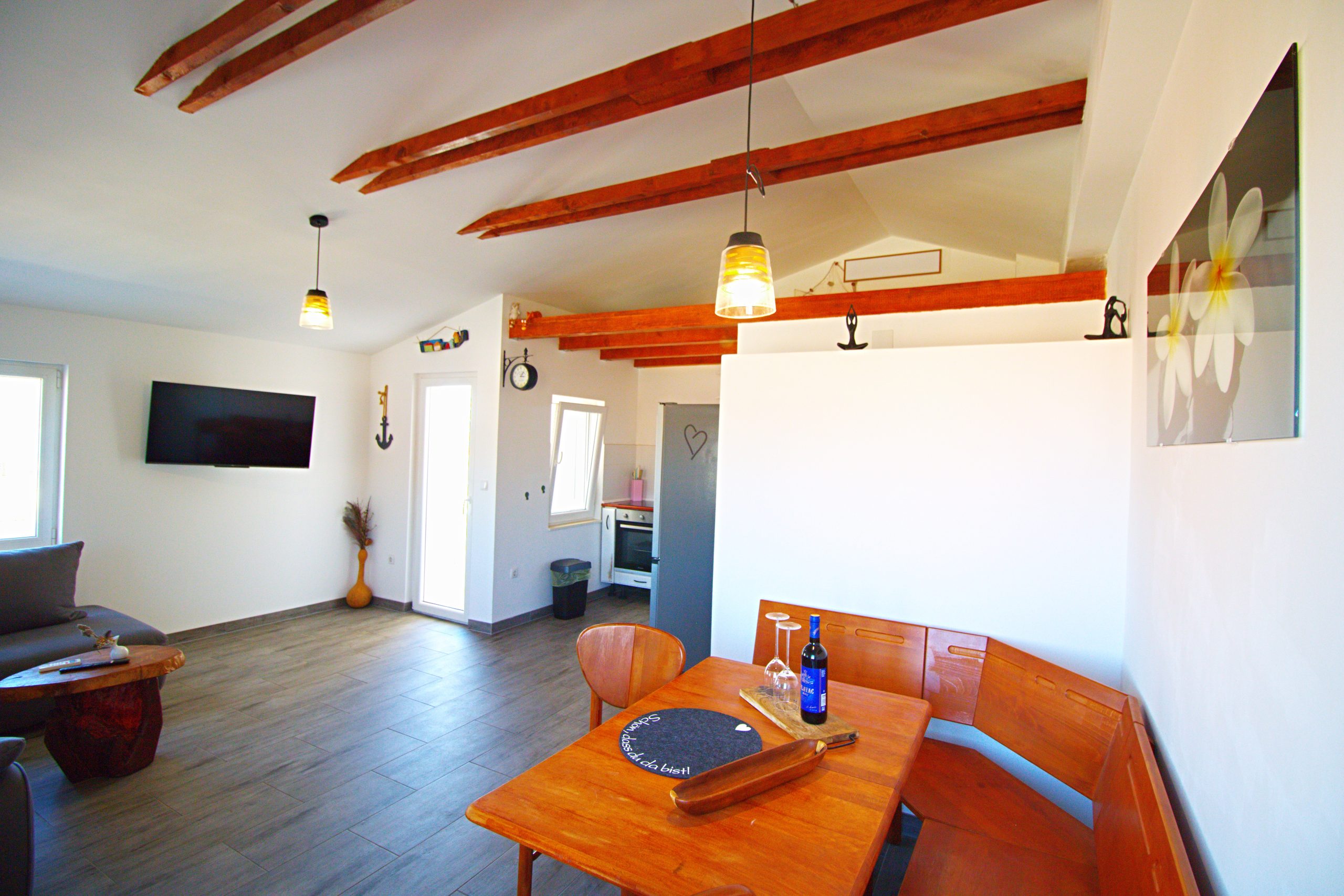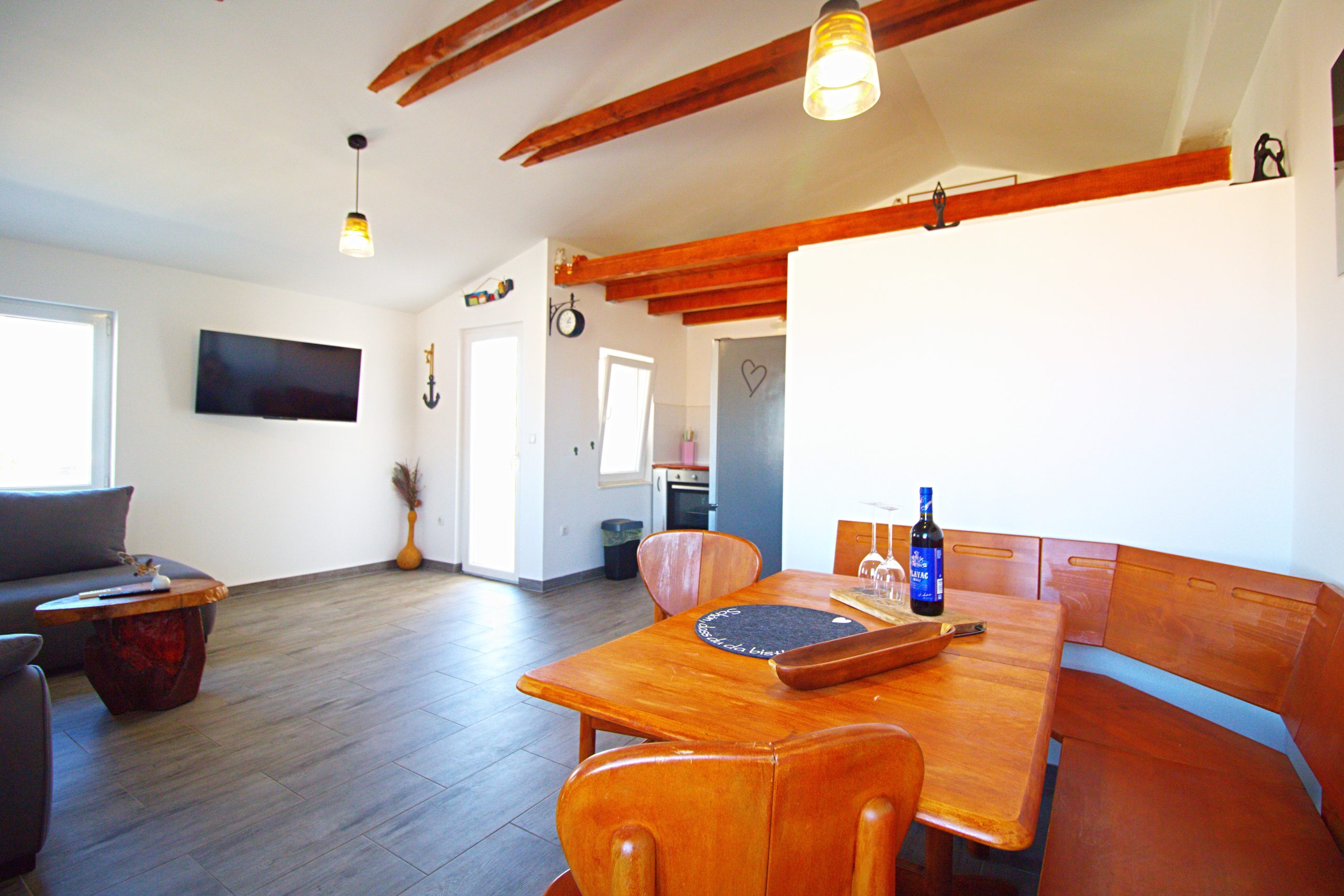 Nice and new family apartment with two bedrooms is situated on a great location. Very close to local Luke beach and sandy Podvrške beach.Thisapartments has two bedrooms where can sleep 4 persons, there is a living room with extra bed (sofa) which can be used for sleeping.